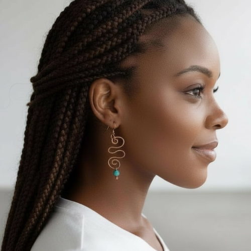 Copper Earrings Swirl W/ Turquoise Glass Bead